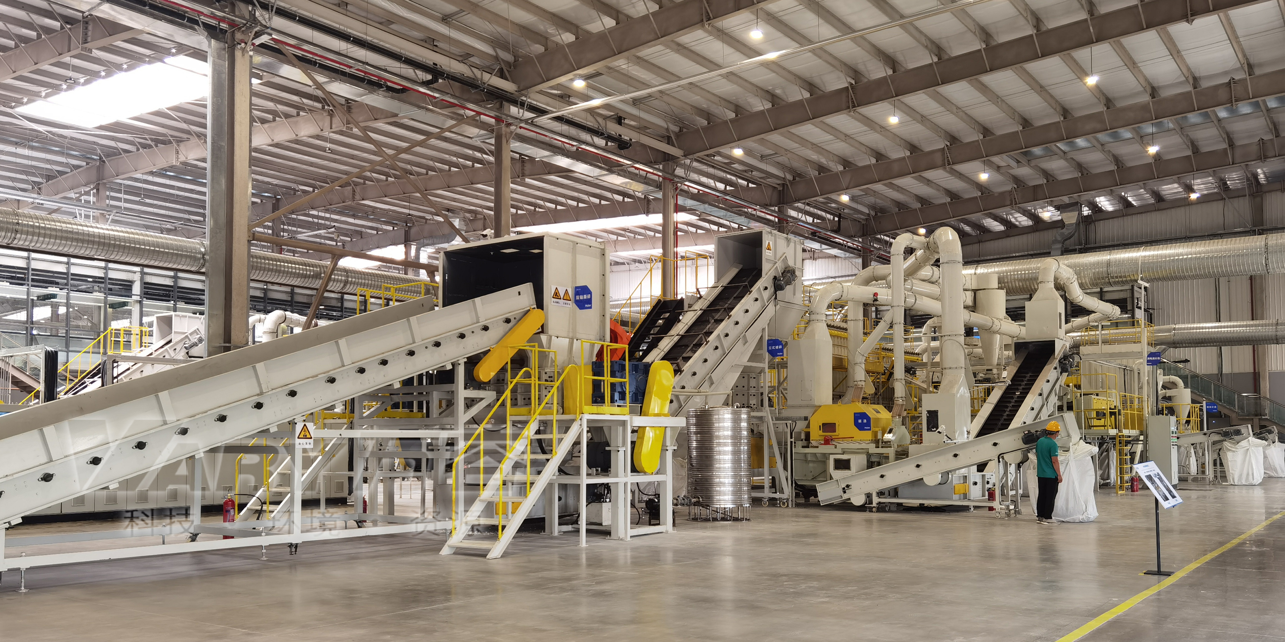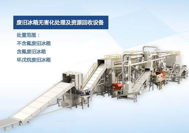 公司自主研發(fā)的廢舊冰箱無(wú)害化處理及資源回收技術(shù)及設(shè)備, 獨(dú)具 “雙軸撕碎機(jī)+立式破碎機(jī)+大風(fēng)量稀釋環(huán)戊烷氣體”的專利組合設(shè)計(jì), 主要用于對(duì)廢舊冰箱中的各種原材料進(jìn)行分離、 回收和利用, 具有自主知識(shí)產(chǎn)權(quán), 經(jīng)國(guó)家工業(yè)和信息化部科技成果鑒定為 “填補(bǔ)國(guó)內(nèi)空白, 達(dá)到國(guó)際先進(jìn)水平” 。